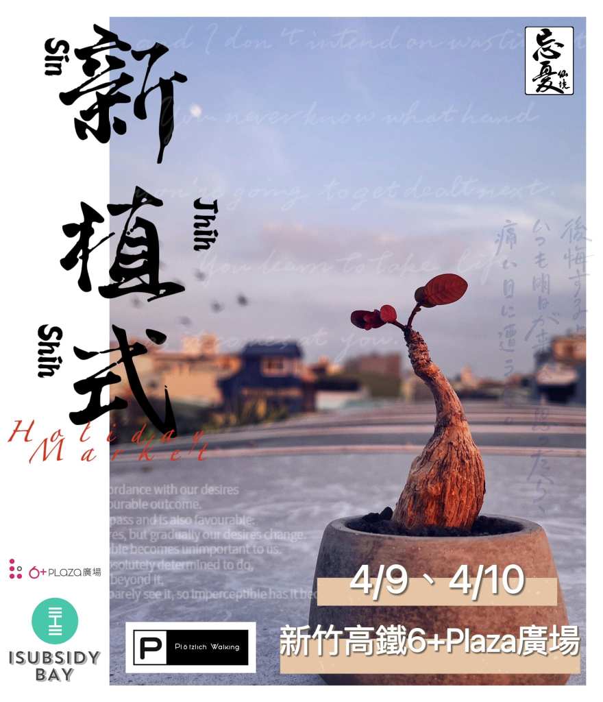 生活的意義在於無窮地探索尚未知道的東西,嚮往著擁抱自然的心情,此次邀請夢時代多肉森林執行團隊忘憂仙境x 新竹在地生活美學品牌「Plötzlich Walking」在4月9日~10日兩天,攜手暐順6+plaza廣場,在新竹高鐵旁打造一場佈滿綠意、手作創意的新植式 6+pass植物市集活動。